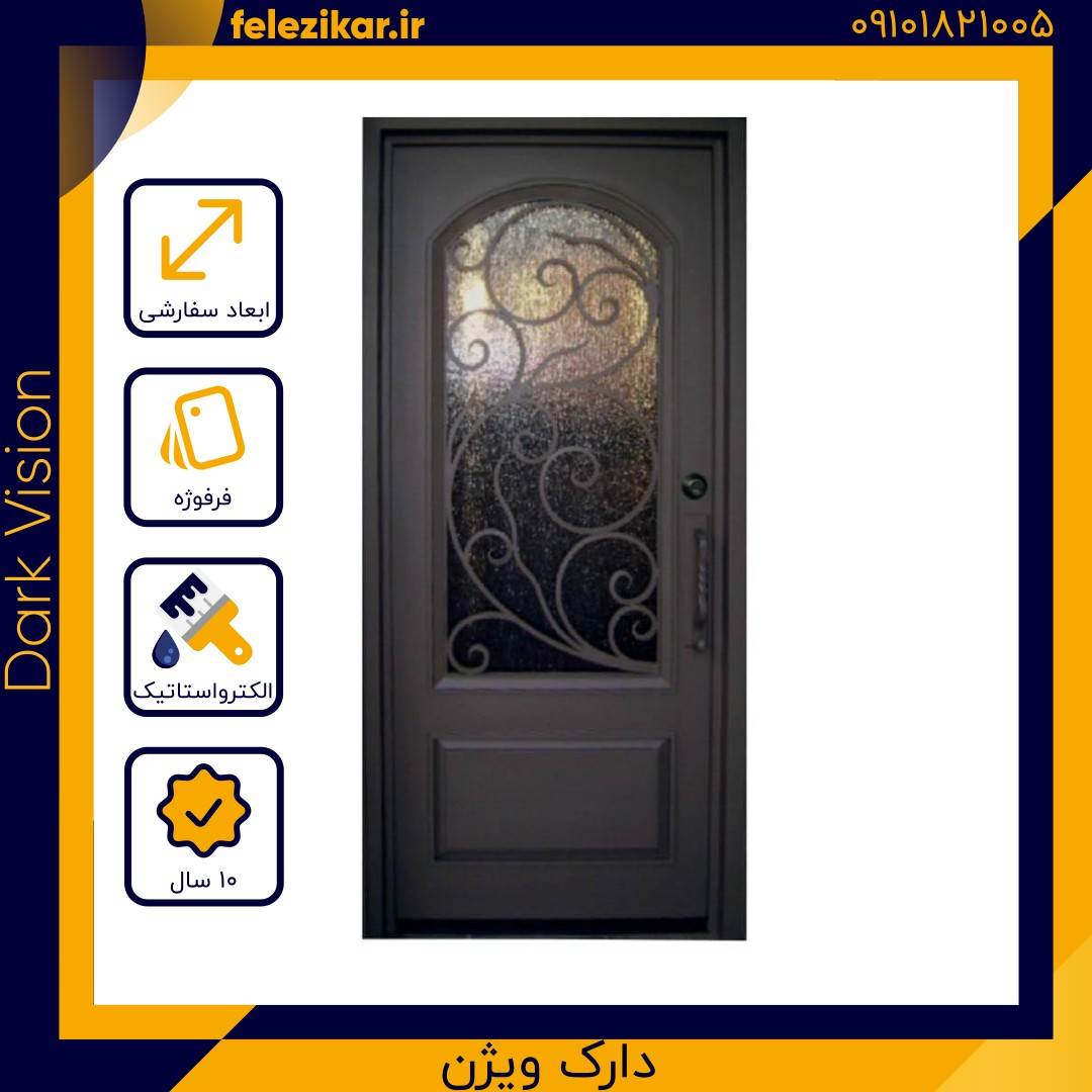 این درب یک درب فلزی تک لنگه با رنگ مشکی مات است. دستگیره درب نیز فلزی و به رنگ مشکی است. در قسمت بالایی درب، یک پنجره وجود دارد که نور را به داخل ساختمان هدایت میکند.